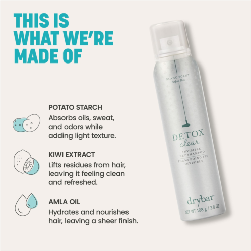 What Else You Need to Know: Detox Clear Invisible Dry Shampoo is great for light oil absorption and a soft, sheer finish in all hair types. For max oil absorption and a matte finish, try Detox Dry Shampoo. Detox Clear features Drybar's Blanc fragrance with notes of coconut, amber, and vanilla.