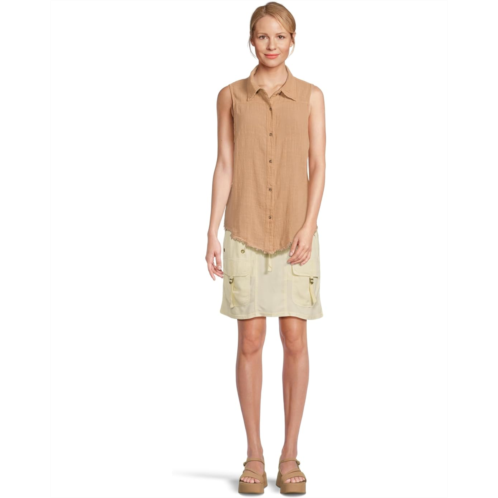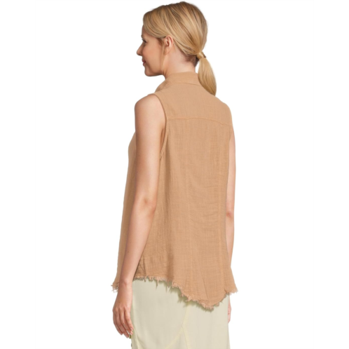 The XCVI Otto Top is a breezy, laid-back essential with a touch of edge. Crafted from cotton gauze, it features a traditional button-up tank silhouette with a front and back yoke for subtle structure. The raw-edge detailing adds a lived-in vibe, while the high-low hem creates a flattering drape.