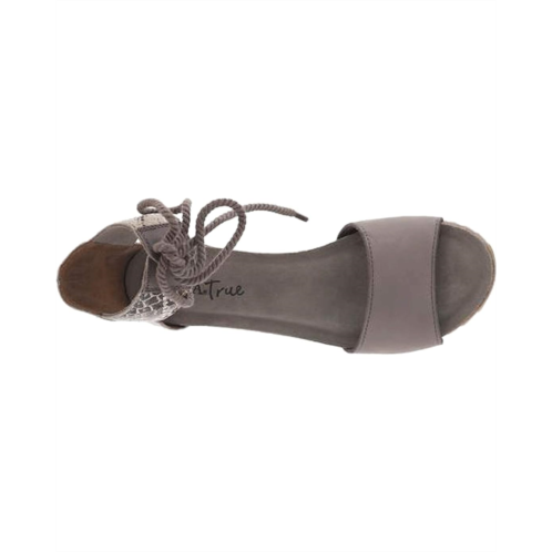Enjoy a night out wearing the Diba True Nite Lite featuring a leather upper, halo ankle strap with lace-up closure, open-toe silhouette, and wedge heel.