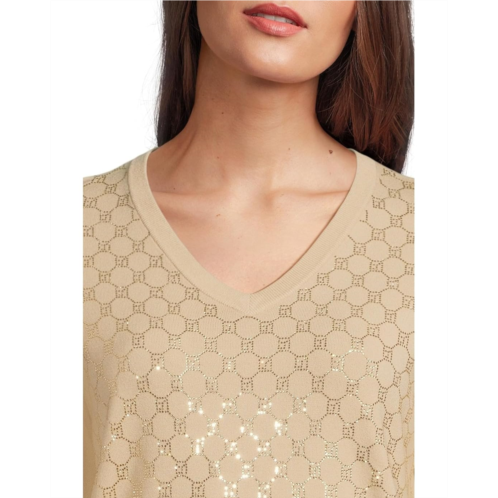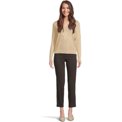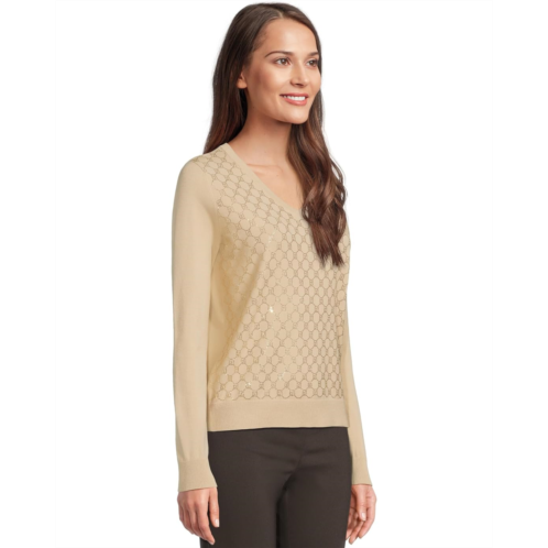 Add a little shine to your classic looks in the Elliott Lauren Pop Top - Long Sleeve V-Neck Sweater with Crystals detail. This pull-on style sweater offers a V-neckline, long sleeves, geometric design on front with crystal detailing, and a straight hemline.
