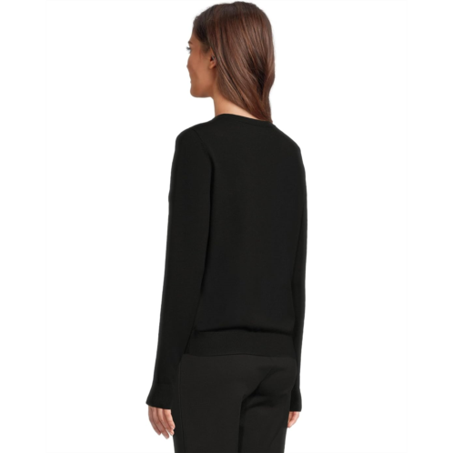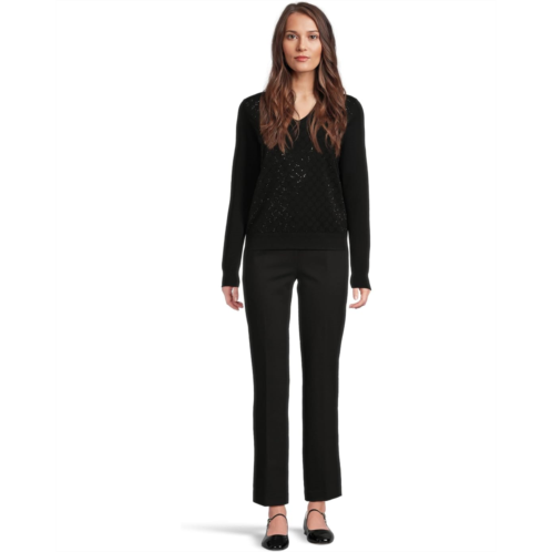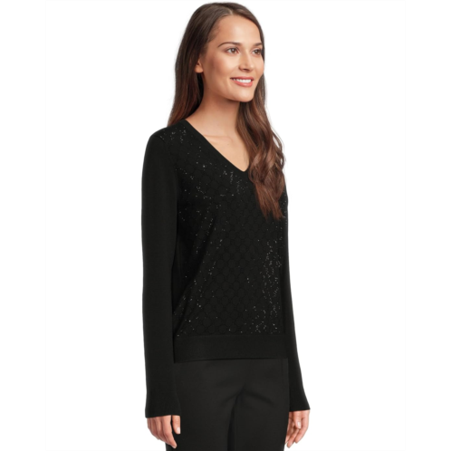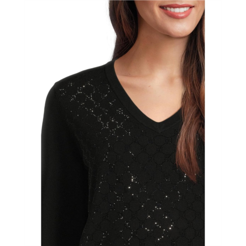 Add a little shine to your classic looks in the Elliott Lauren Pop Top - Long Sleeve V-Neck Sweater with Crystals detail. This pull-on style sweater offers a V-neckline, long sleeves, geometric design on front with crystal detailing, and a straight hemline.