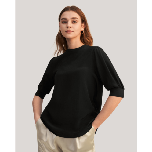 LILYSILK elegant casual silk tee with rib cuff for women