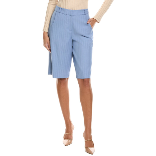 Introducing the Amanda Uprichard Pablo Shorts in Blue, a stylish addition to your summer wardrobe. These shorts feature a 10.5 inch rise and inseam approximately 11.5 inches, perfect for a flattering fit. The design details include four-pocket styling, a zip fly with hook-and-bar closure, and are made from 100% polyester. The model is 5'10 and is wearing a size S, with measurements that may vary slightly by size. Dry clean only. Imported. Perfect for a chic and comfortable look, the Amanda Uprichard Pablo Shorts are a must-have for any fashion-forward woman.