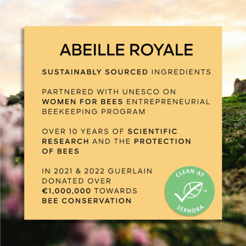 Bee products are some of the most effective natural-healing substances. Guerlain has extracted their active power to create Abeille Royale: a skincare collection that diminishes the visible signs of aging with pure royal concentrate. Fully aware of its social and environmental responsibilities, Guerlain integrated sustainable development into its company strategy back in 2007. Guerlain‘s partnership with The Brittany Black Bee Conservatory guarantees sustainable sourcing of bee products.