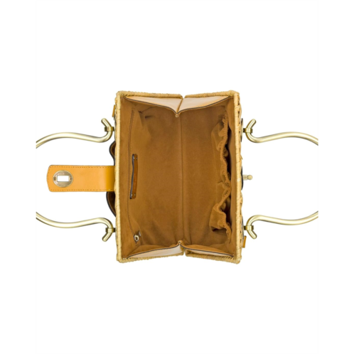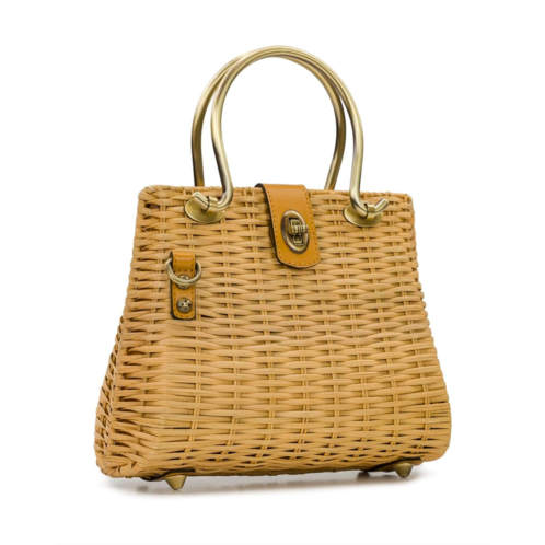 - Breezy elegance, timeless charm - meet the Patricia Nash Rodia Top Handle Bag, a stunning fusion of natural rattan and luxurious full-grain leather trim. Designed for effortless sophistication, this beauty features signature brushed brass hardware, handcrafted stitching, and a chic twist-lock closure for vintage appeal. The spacious interior, lined in soft faux suede, offers a zippered pocket and two slip pockets for easy organization, while the exterior slip pocket adds quick-access convenience. A detachable crossbody strap and protective metal feet ensure both versatility and durability. Finished with a delicate Spring Multi print scarf, the Rodia is your perfect companion-whether it's a sunlit picnic, a seaside escape, or the boardroom.