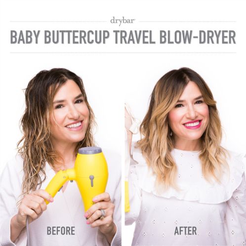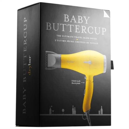 Baby Buttercup Travel Blow Dryer features ionic technology, which increases shine, reduces frizz, and dramatically decreases dry time. The powerful motor is designed with two temperature/heat settings for custom blowouts, while a cool shot button locks in styles. It weighs less than a pound, easily folds into a compact format to fit into any suitcase, and includes a cute 'I'm Full of Hot Air!' travel bag to protect against scuffs and scrapes.