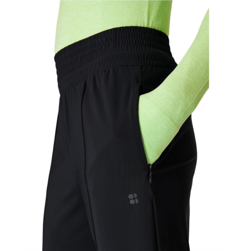 This Sweaty Betty Explorer Wide Leg Track Pants is spun from ultra-lightweight, breathable, and four-way stretchable fabric. It features two zippered side pockets, elasticized waistband, and pull-on construction.