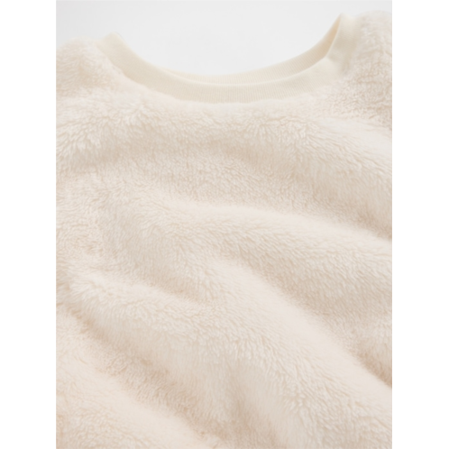 - Dropped shoulder, long sleeves with elasticized cuffs.