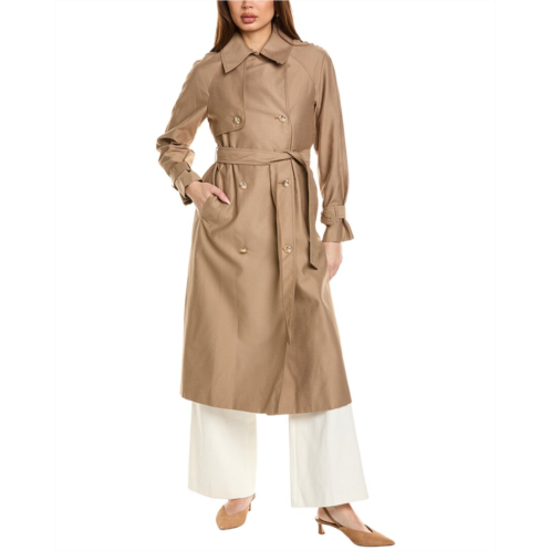 Elevate your outerwear collection with the LK Bennett Keaton Coat. This sophisticated double-breasted trench coat in a stunning pale beige color is the perfect piece for transitioning through seasons. Made from a luxurious viscose mix, this coat features elegant design details such as a v-neck, metal crest buttons, adjustable cuffs, and a removable belt. Whether paired with sharp trousers or relaxed denim, the Keaton Coat exudes timeless style and versatility. Crafted from 90% viscose/rayon and 10% polyester with a 100% viscose/rayon body and 100% polyester sleeve lining, this coat should be dry cleaned only. Imported for your convenience, this coat measures approximately 46.85 inches from shoulder to hem. Make a statement this season with the LK Bennett Keaton Coat.