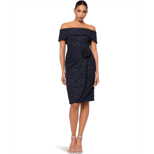 XSCAPE Short Brocade Off The Shoulder Flower