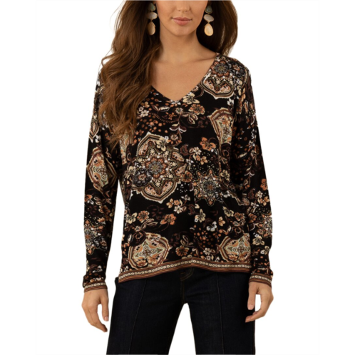 Elevate your wardrobe with the Hale Bob Alondra Blouse in Black. This stunning blouse features colorful femininity with a nod to boho style, perfect for any fashion-forward woman. Made from 100% viscose, this blouse is both stylish and comfortable. The Alondra Blouse measures approximately 23.25 inches from shoulder to hem and is imported for quality. For care instructions, hand wash with cold water, do not bleach, line dry in shade, do not tumble dry, low iron with cloth, or dry clean. Add a touch of elegance to your outfit with the Hale Bob Alondra Blouse.