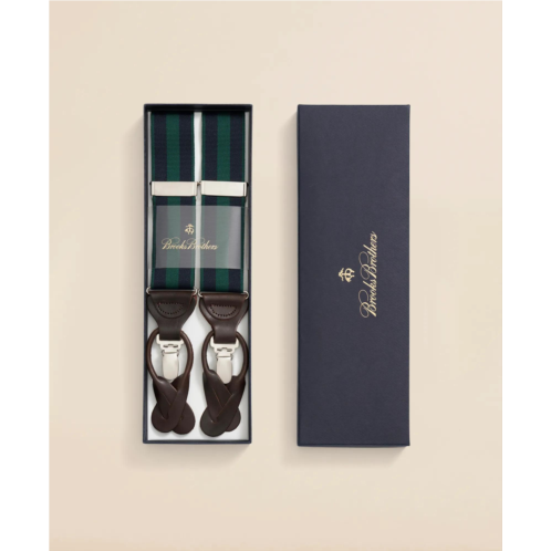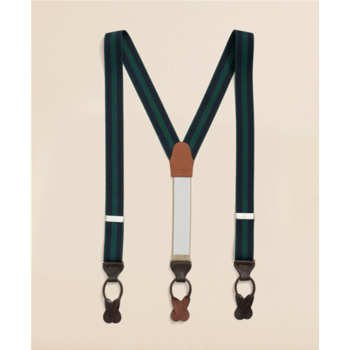 Made from polyester with leather trim and featuring bold-stripe detail, our suspenders are the gentlemanly addition your wardrobe needs. Easily switch between button ends or clip ends and adjust the fit to your personal style.