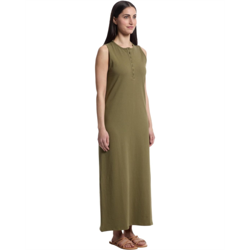- The Lilla P Henley Maxi Dress, in mid-weight structured knit fabric, is a versatile addition to your dress collection. With a skinny placket and a sleek silhouette that skims the body without being too fitted, this long dress combines comfort with effortless style. A side slit on the left adds a hint of allure, while the buttoned front closure ensures easy wear. This sleeveless dress is designed with a jewel neckline and a straight hem. Ideal for spring days or casual evenings, this maxi dress is a wardrobe staple.