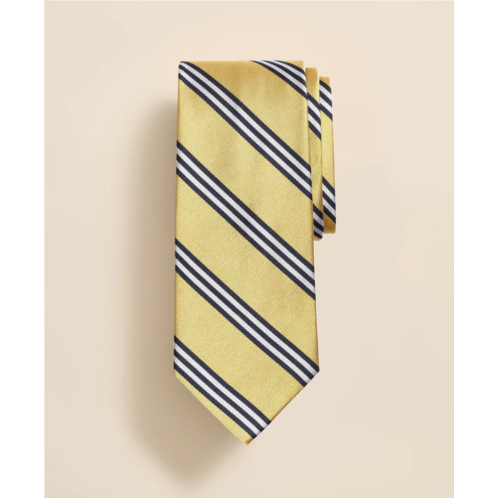 The classic Rep tie dates to the early 20th century when Britain donned their regimental ties with left-to-right stripes to represent heart to sword. They quickly caught on with the boarding school and social club set. And in 1902 we Americanized the style by switching the direction of the stripes in a nod to every-man democracy. Today the BB#1 pattern made from silk expertly woven in Italy, is an enduring classic having graced the collars of our biggest pop-art stars and presidents for over a century.
