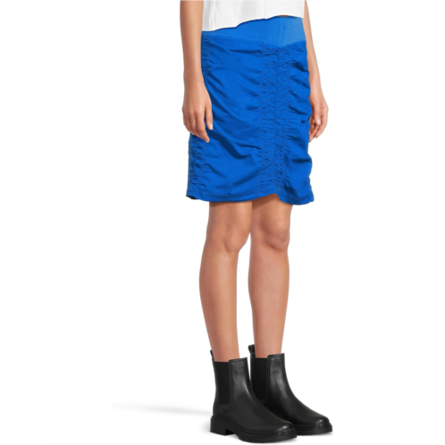 This XCVI Trace Skirt brings easy, cozy, and flattering style to your wardrobe. The comfortable skirt is tailored from a lightweight stretch poplin fabrication and features a pull-on, knit elasticized waistband, ruched sides, and a straight hem.