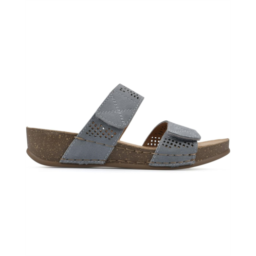 Make a statement in your spectacular fashion tempo wearing the White Mountain Ferula Sandals. The slip-on footwear features breathable leather upper straps with perforated design and low wedge heels.