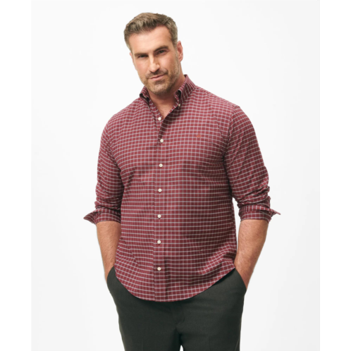 Brooksbrothers Big & Tall Stretch Cotton Non-Iron Oxford Polo Button Down Collar Windowpane Shirt