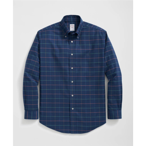 Brooksbrothers Stretch Cotton Non-Iron Oxford Polo Button Down Collar Multi Windowpane Shirt