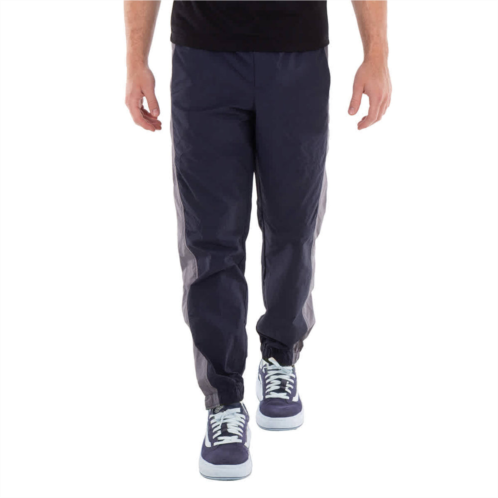 메종키츠네 Maison Kitsune Men's Bottoms. Fashion category - Pants & Leggings. SKU - MM01101WQ0072-NA. Color - Blue. Maison Kitsune Colourblock Technical Track Pants. Track pants featuring a crinkled finish, water-repellent fabric, a color-block panelled design, a rear logo patch, an elasticated waistband, front press-stud and zip fastening, two side inset pockets, a rear zip-fastening pocket, and tapered legs with elasticated ankles. Polyamide 100%.