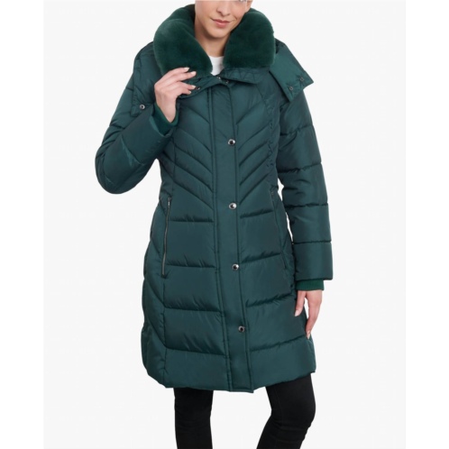 London Fog zip-front hooded heavy weight puffer jacket with button-off fur collar in green