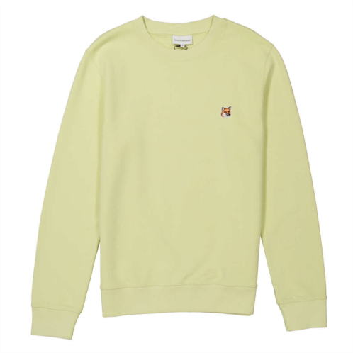 메종키츠네 Maison Kitsune Men's Tops. Fashion category - Hoodies & Sweatshirts. SKU - LM00301KM0001-CHALK YELL. Color - Yellow. Maison Kitsune Fox Head Patch Sweatshirt. This cotton sweatshirt features a classic cut with long sleeves, ribbed cuffs, neckline, and waist, and is adorned with an embroidered Fox Head patch at the breast. 100% Cotton.