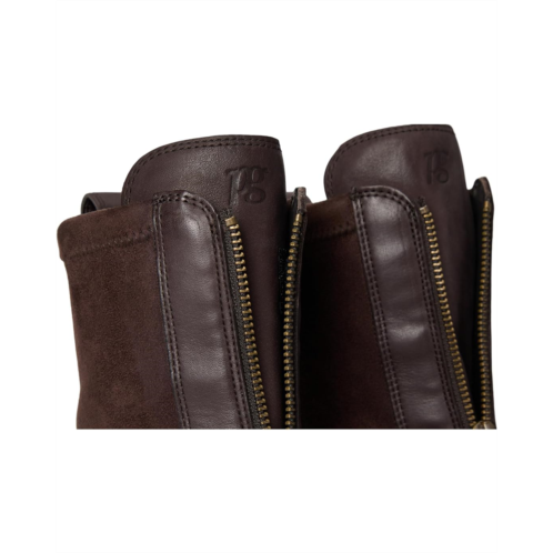 Unleash Your Shoe-finity wearing the Paul Green Sheridan Lug. This boot is made of leather with a velour stretch fabric around the ankle for added comfort. The contrasting welt detail and zippered front details add edge and style. Featuring round toe, flat heel, and calf-high silhouette.