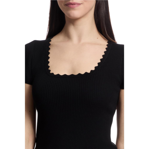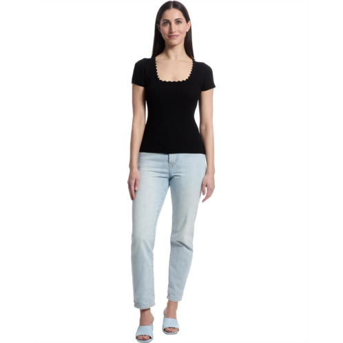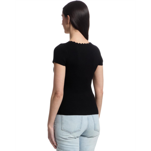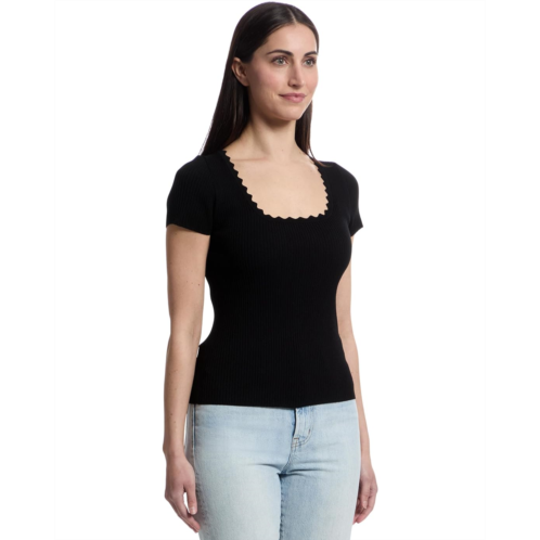 Womens Lilla P Cap Sleeve Scallop Neck Sweater