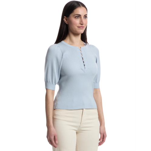 Womens Lilla P Elbow Sleeve Henley Sweater