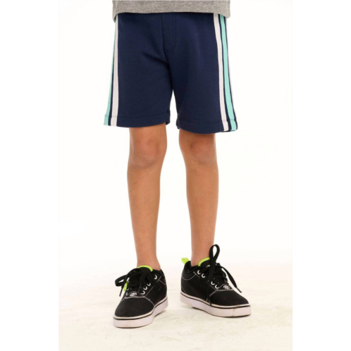 Presenting Chaser's Boy's Coastin' Stripe Shorts in a refreshing blend of blue hues for the summer. Made from 100% Cotton French Terry, these shorts offer a cozy and casual feel with their soft material. Designed with cool contrast stripes, these shorts add vibrant energy to any young wardrobe. Perfectly pair them with the matching tank and hoodie for a cohesive look.