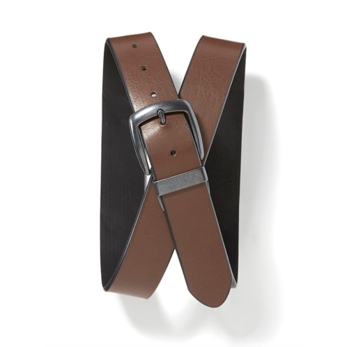 - reversible faux-leather belt is dark brown on one side, black on the other