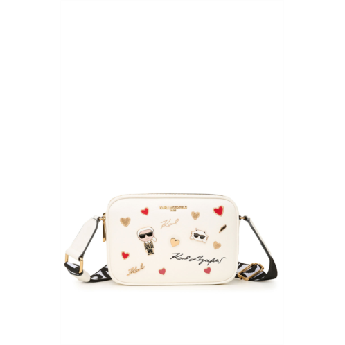 Add a touch of flair to your outfit with the crossbody bag by KARL LAGERFELD PARIS featuring playful Karl pins, complete with an adjustable strap for the perfect fit|100% PVC | Top Zipper Closure | Non-Detachable Shoulder Strap | 2 Interior Pockets - 1 Inside Front Pocket And 1 Back Zip Pocket | 1 Exterior Back Slip Pocket|27' Strap Drop|8 x 6 x 3