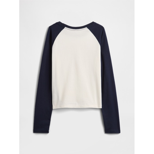 - Colorblock long raglan sleeves.