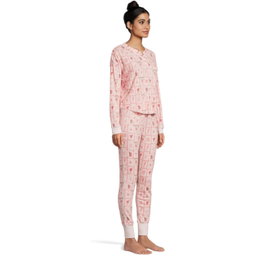 - A long sleeve henley crewneck paired with high rise joggers in a stretchy, ribbed jersey fabric. With allover print, you'll be ready for a day of lounging or a restful evening.