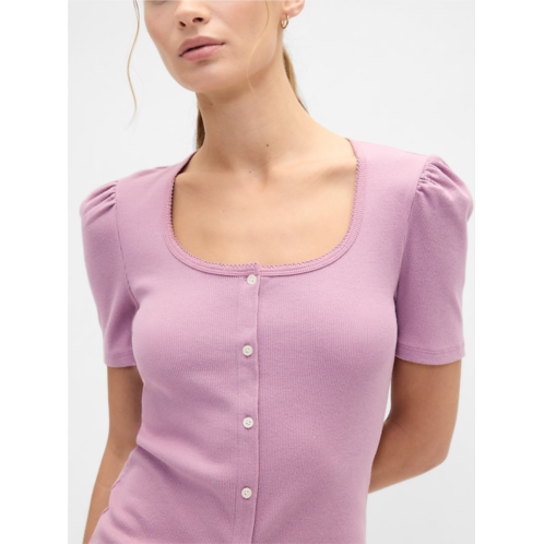Gap Ribbed Scoopneck Puff Sleeve Top