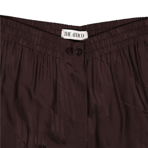 The Attico Ladies Bottoms. Fashion category: Pants & Leggings. SKU: 236WCP131. Color: Brown. The Attico Ladies Brown 'Jagger' Monogrammed Long Pants. Cut from fluid pied de poule, this pair of pants features wide leg and elastic at the bottom, a zip fly with a button and hooks, a relaxed fit and finished with a jacquard monogram pattern. 100% Viscose. Made in Italy.