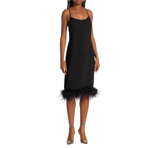 A short and breezy dress for those warmer days.Amanda Upichard's Marianna dress flaunts a dramatic feather hem. Featuring a flattering scoop neck, this bias-cut piece is finished with back-crisscrossed straps. Scoop neck. Adjustable spaghetti straps. Back zip closure. 100% Polyester. Dry clean.
