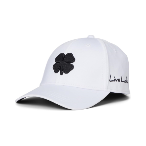 - Embroidered clover logo at front panels and Live Lucky Script at side and bill.