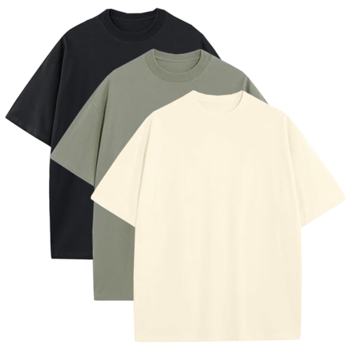 Blu Rock mens oversized heavyweight cotton crew neck short sleeve tee loose fit tops-3 pack