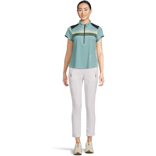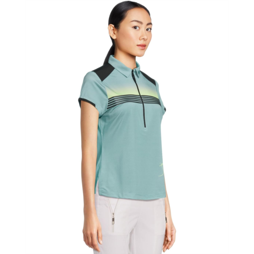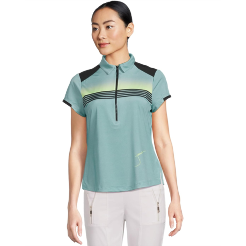 - Embrace comfortable and chic vibes wearing the Jamie Sadock Gamma Ray Print Polo Shirt. Crafted with a lightweight breathable Cooltrex perfomance fabric, the pull-on style top features a collared neck, short sleeves, a quarter-zipper closure, printed details at the upper body, and a straight hem.