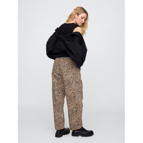 Gap Mid Rise Print Pull-On Barrel Jeans