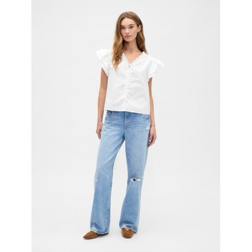 Gap Relaxed Poplin Flutter Sleeve Top