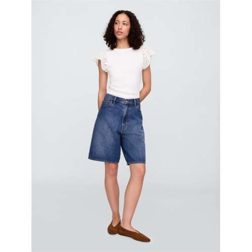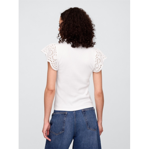 Gap Ribbed Eyelet Flutter Sleeve T-Shirt