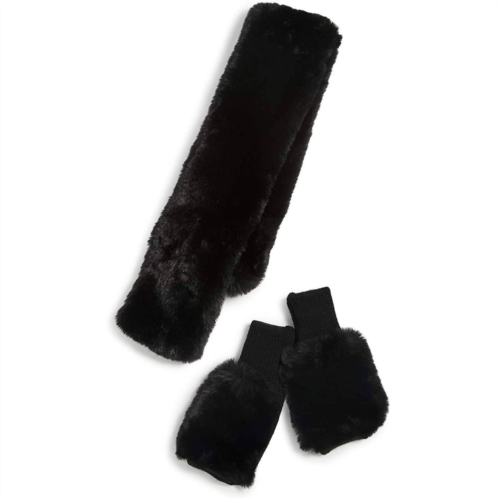 Jocelyn faux fur pull through scarf and mitten set in black