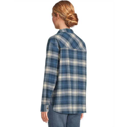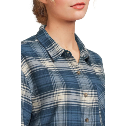 - The Salty Crew Shore Break Flannel delivers the ultimate blend of relaxed style and functional cool. Designed with an oversized, boxy fit, this flannel delivers laid-back layering perfection whether you're hitting the beach, a bonfire, or weekend adventures. The classic collared neck and button-front closure bring timeless structure, while long sleeves with buttoned cuffs offer adjustable comfort for every mood. Thoughtful details like a front chest patch pocket, scallop hem, and back yoke pleats elevate the style quotient, with subtle metal branding at the pocket adding a polished finishing touch.