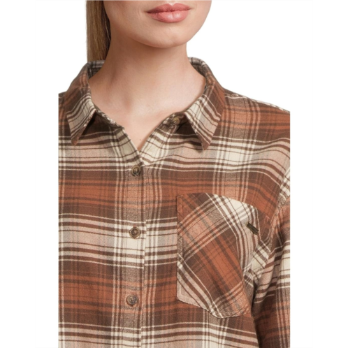 - The Salty Crew Shore Break Flannel delivers the ultimate blend of relaxed style and functional cool. Designed with an oversized, boxy fit, this flannel delivers laid-back layering perfection whether you're hitting the beach, a bonfire, or weekend adventures. The classic collared neck and button-front closure bring timeless structure, while long sleeves with buttoned cuffs offer adjustable comfort for every mood. Thoughtful details like a front chest patch pocket, scallop hem, and back yoke pleats elevate the style quotient, with subtle metal branding at the pocket adding a polished finishing touch.
