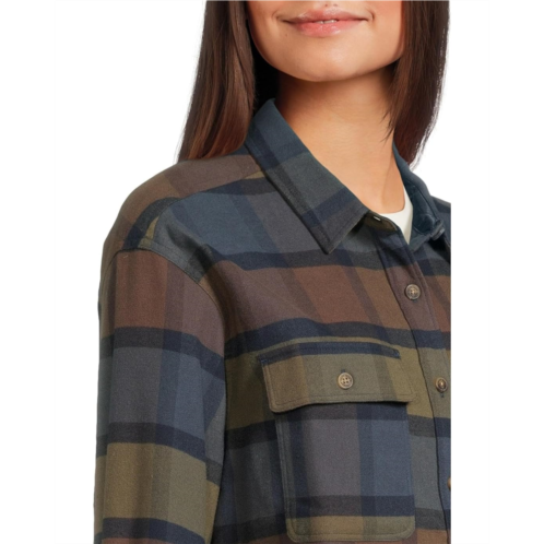 - The Salty Crew Fathom Flannel is where rugged utility meets laid-back coastal cool. Designed for life on and off the water, this water-resistant shacket delivers all-day protection and warmth without compromising on style. Its classic collared neck and button-front closure bring timeless appeal, while long sleeves with adjustable buttoned cuffs let you customize your fit. Stay organized and adventure-ready with Salty Crew, patched chest pockets, and lower welt pockets for your essentials. The satin back neck and yoke liner ensure smooth comfort, and the scalloped hemline adds a polished finish.