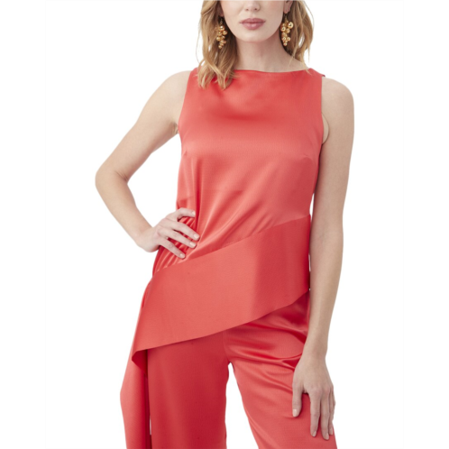 Introducing the Trina Turk Makay Top in Capri Coral, a must-have piece for every stylish woman's wardrobe. This contemporary and colorful top is inspired by California's multicultural mix, reflecting the vibrant spirit of the brand. The Makay Top features an asymmetrical hem, adding a modern twist to a classic silhouette. Made from a blend of 97% polyester and 3% spandex, this top is both comfortable and stylish. It is easy to care for with a simple hand wash and is imported for that extra touch of luxury. With a length of approximately 22.5 inches from shoulder to hem, the Trina Turk Makay Top is perfect for pairing with your favorite jeans or skirts. Upgrade your wardrobe with this chic and versatile top today.