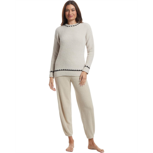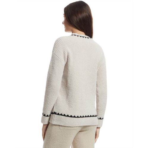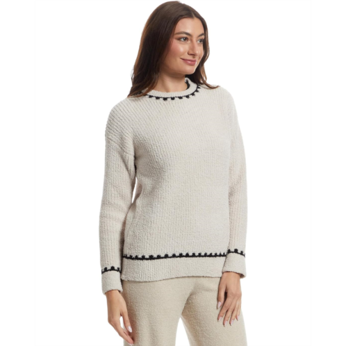 Womens Barefoot Dreams Cozychic Ribbed Sweater With Blanket Stitch