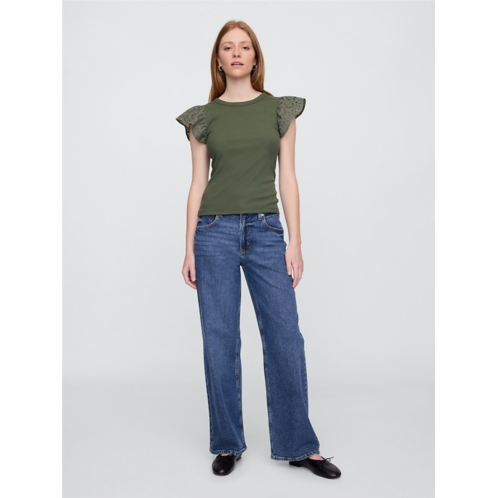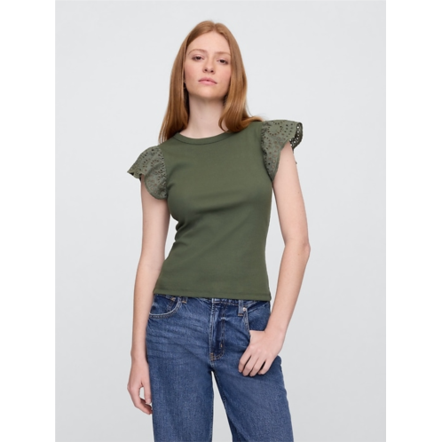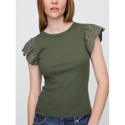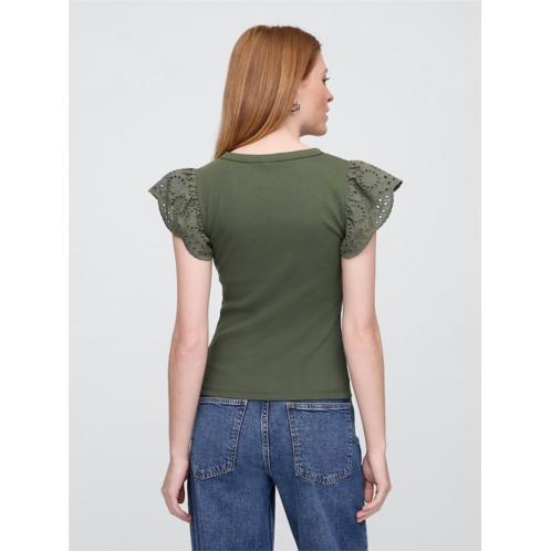 Gap Ribbed Eyelet Flutter Sleeve T-Shirt
