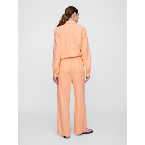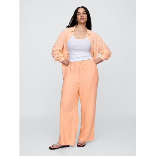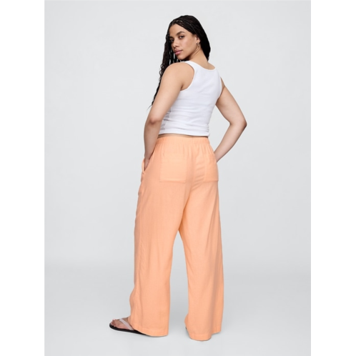 Gap Mid Rise Linen-Blend Pull-On Wide-Leg Pants